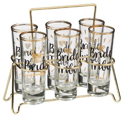 Bride & Bride Tribe Metallic Shot Glasses with Caddy