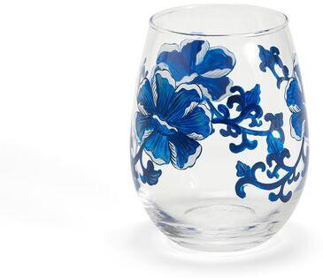 Chinoserie Hand Painted Stemless Single Wine Glass