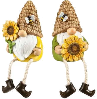 Polyresin Gnome with Sunflower And Dangling Legs Assorted Styles