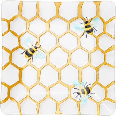 Square Bee Honeycomb Glass Platter
