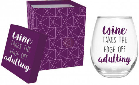 Wine Takes The Edge Off Stemless Glass with Box